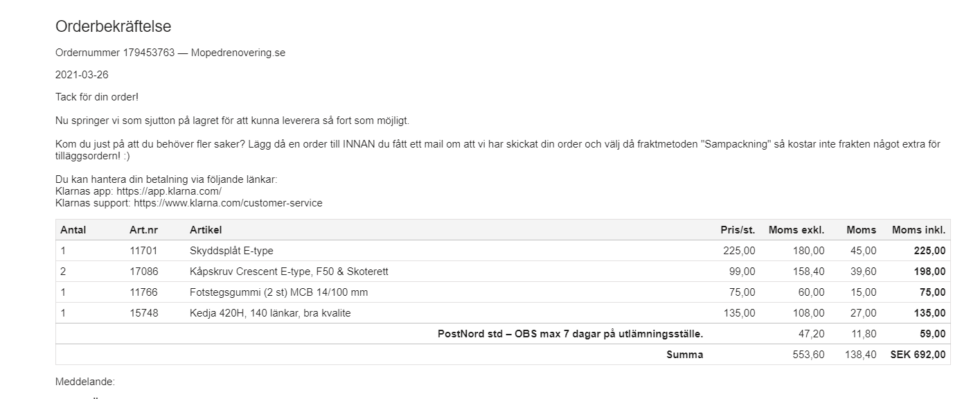 ESGEE skrev: 23 mar 2021, 07:26 Tack, bifogar. Känns som just typbrickan är fräschaste på hela moppen :D