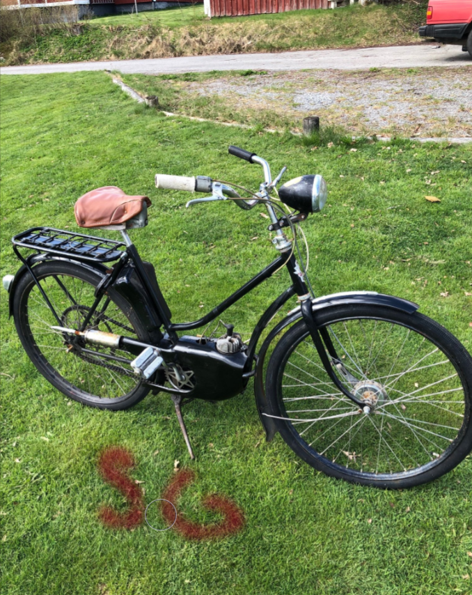 Efter stått i ladan och väntat, fick man efter varit lite less på mina hojar som ej ville till Custom bike show i Norrtälje(av 5 så kallade körbara bara nä) att idag ska jag åka gubbmoppe. Ur med gammal soppa kolla olja inte illa och putsa lite, lite startgas nu ska den igång och cykla.