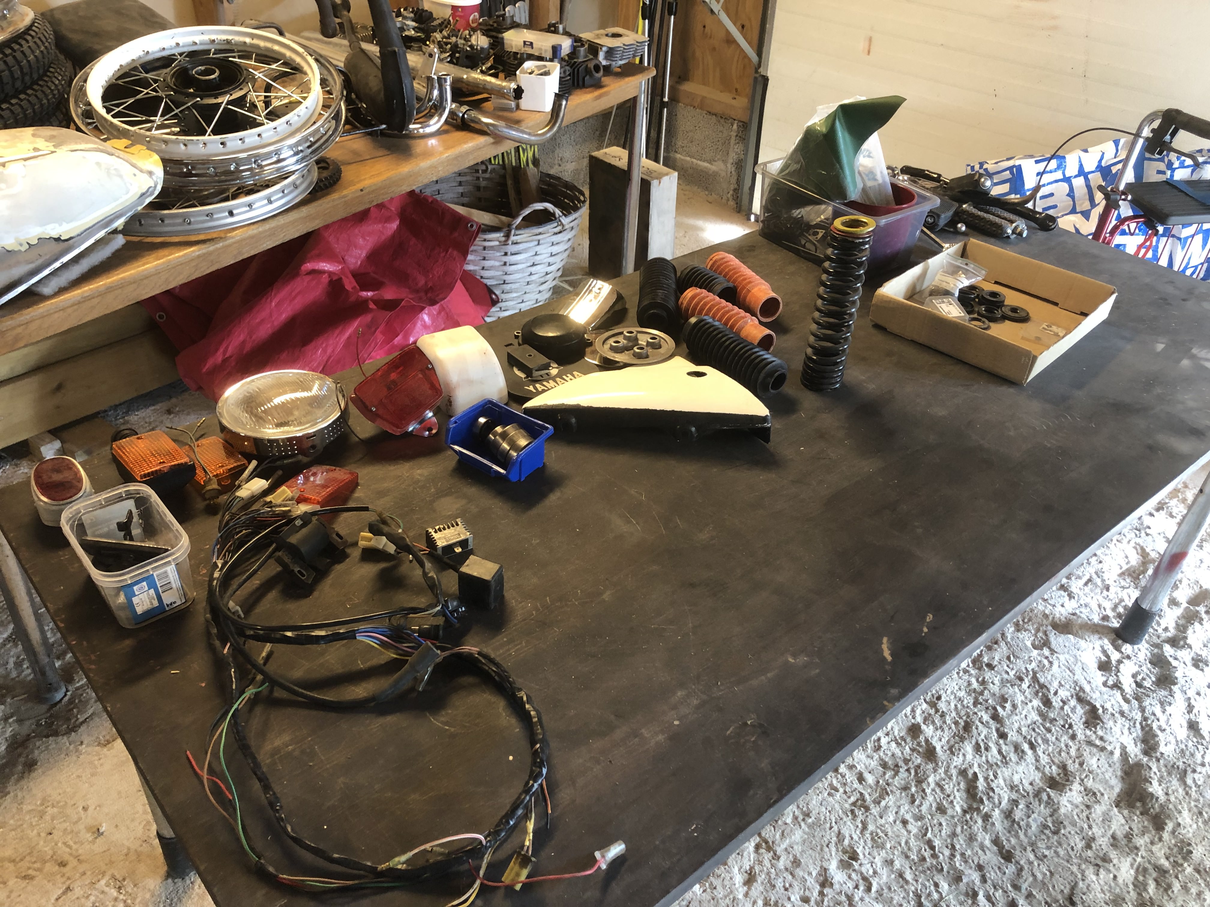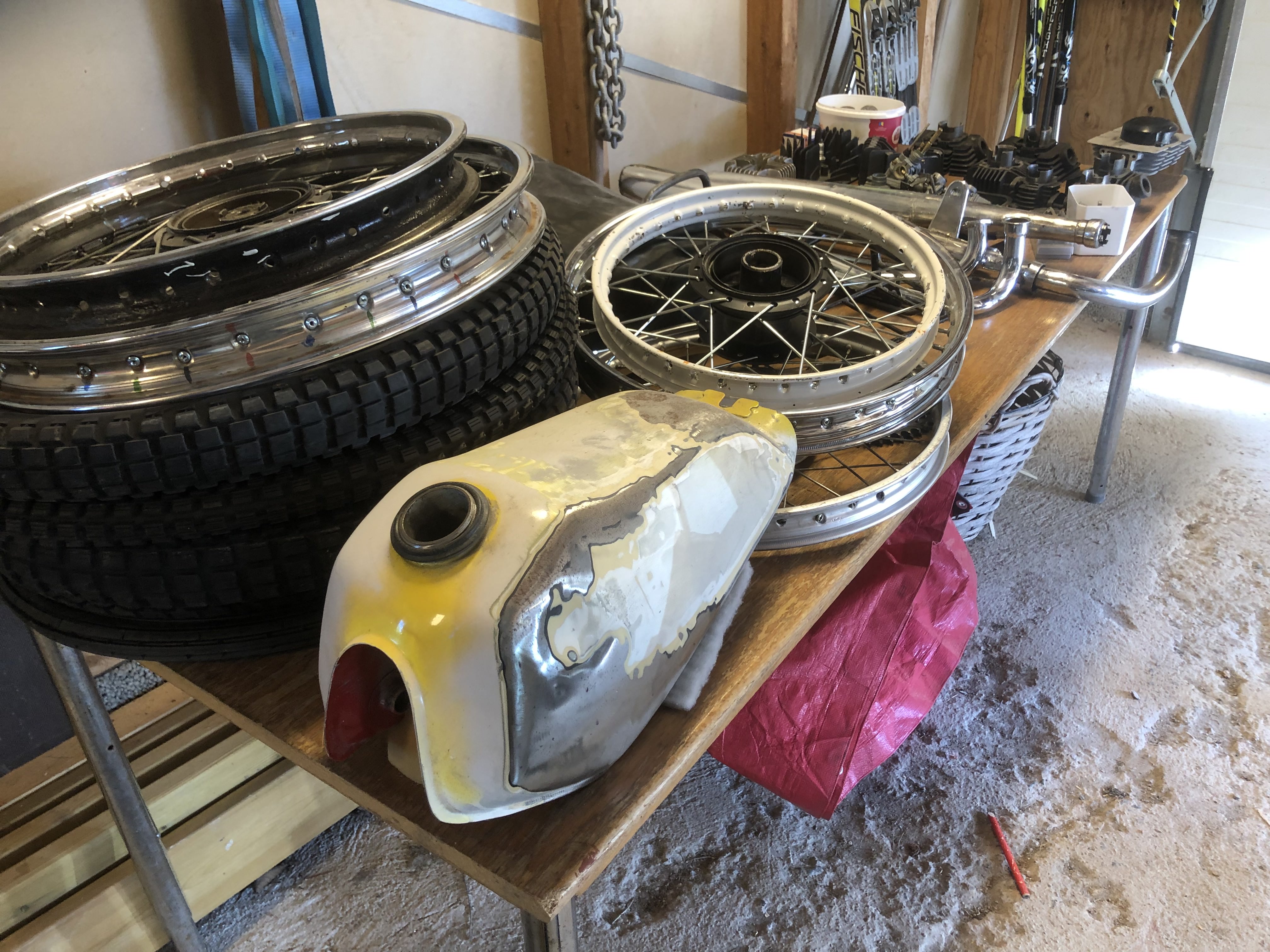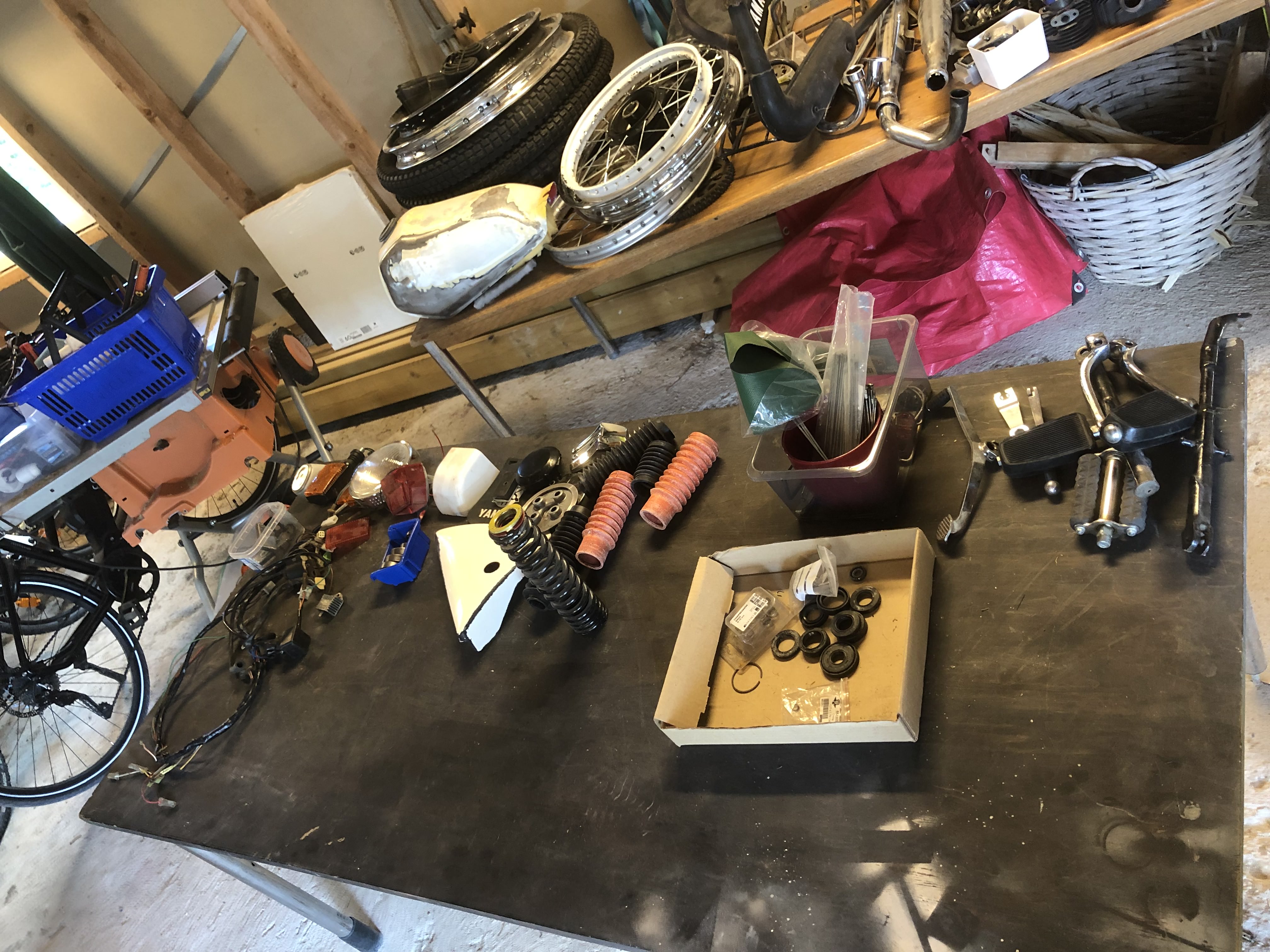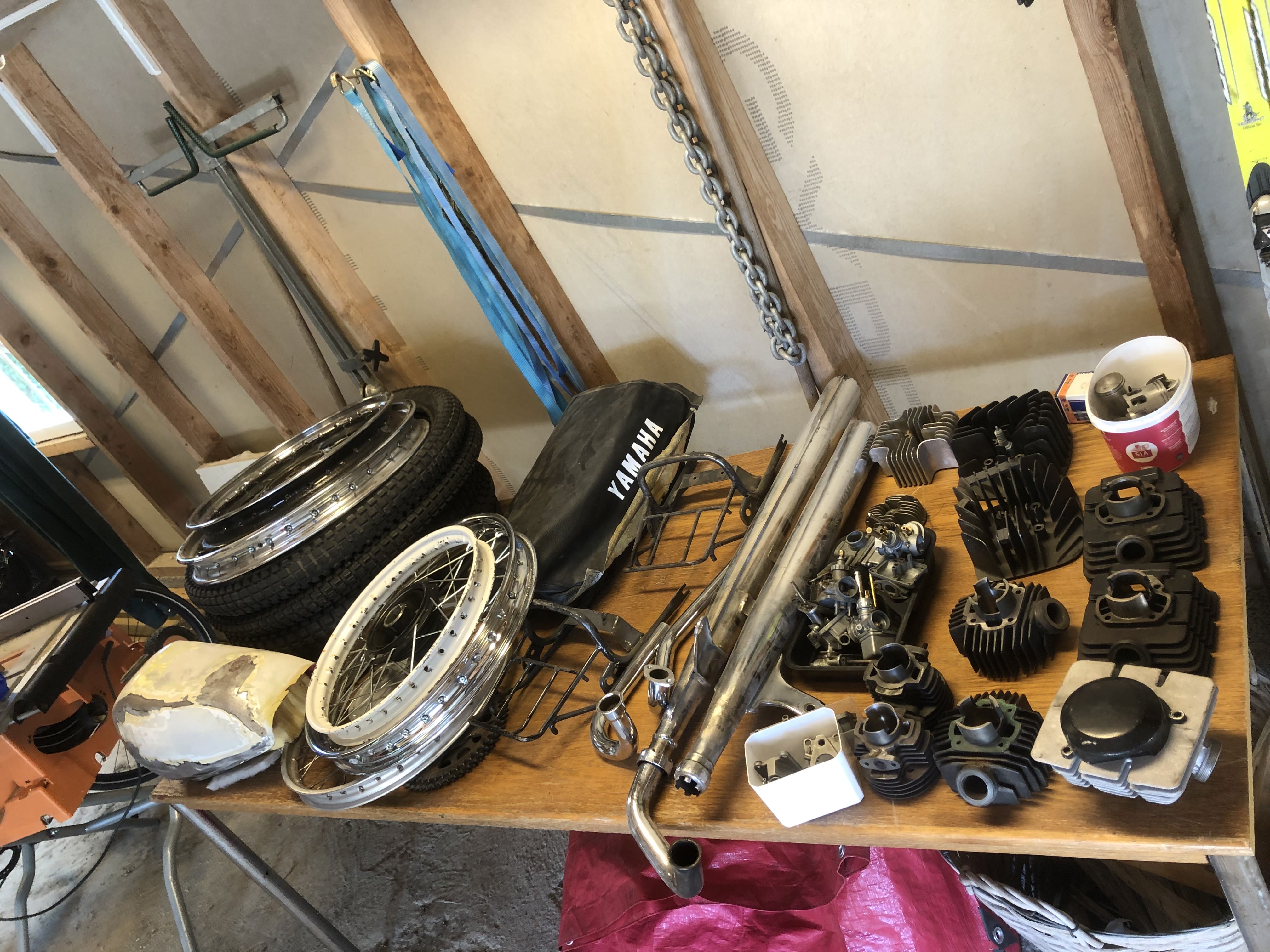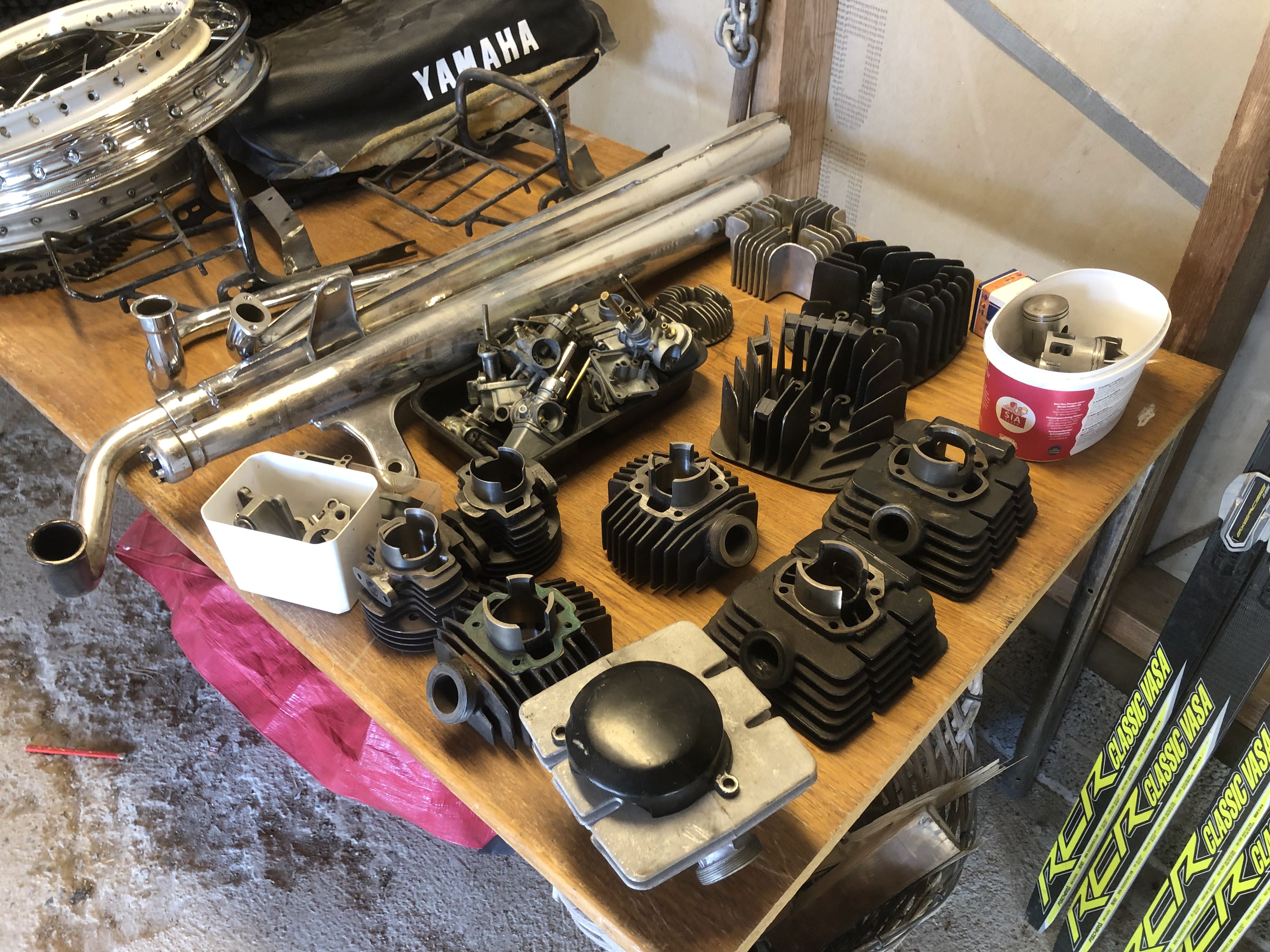 På grund av sjukdom har min kompis inte möjlighet att hålla på med sina mopeder längre och jag hjälper därför honom att sälja av de delar som blivit över. Mopederna är sålda men en smärre samling delar finns kvar.