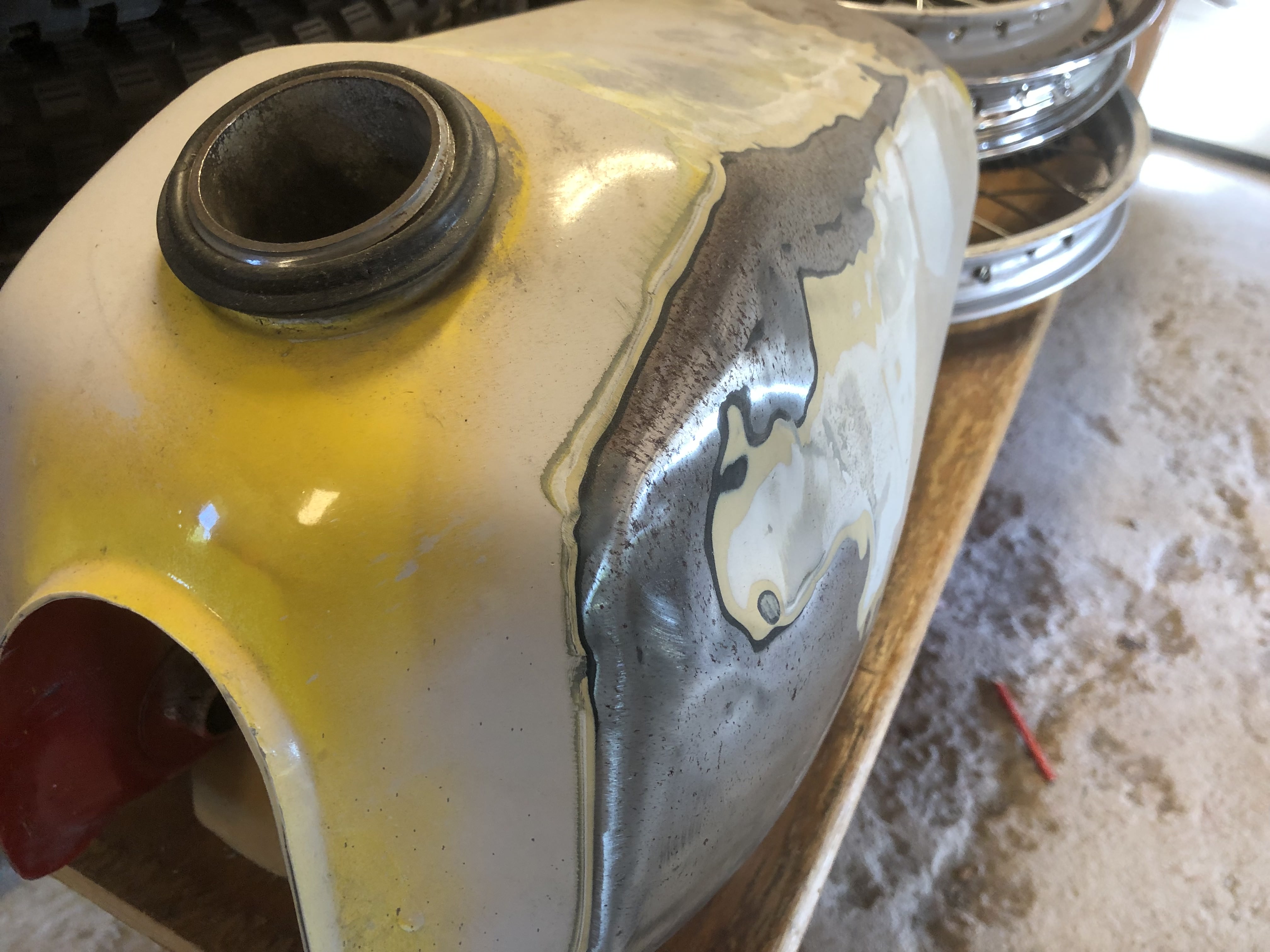 • Yamaha DT Bränsletank (Liten bula i framkant på vänster sida)