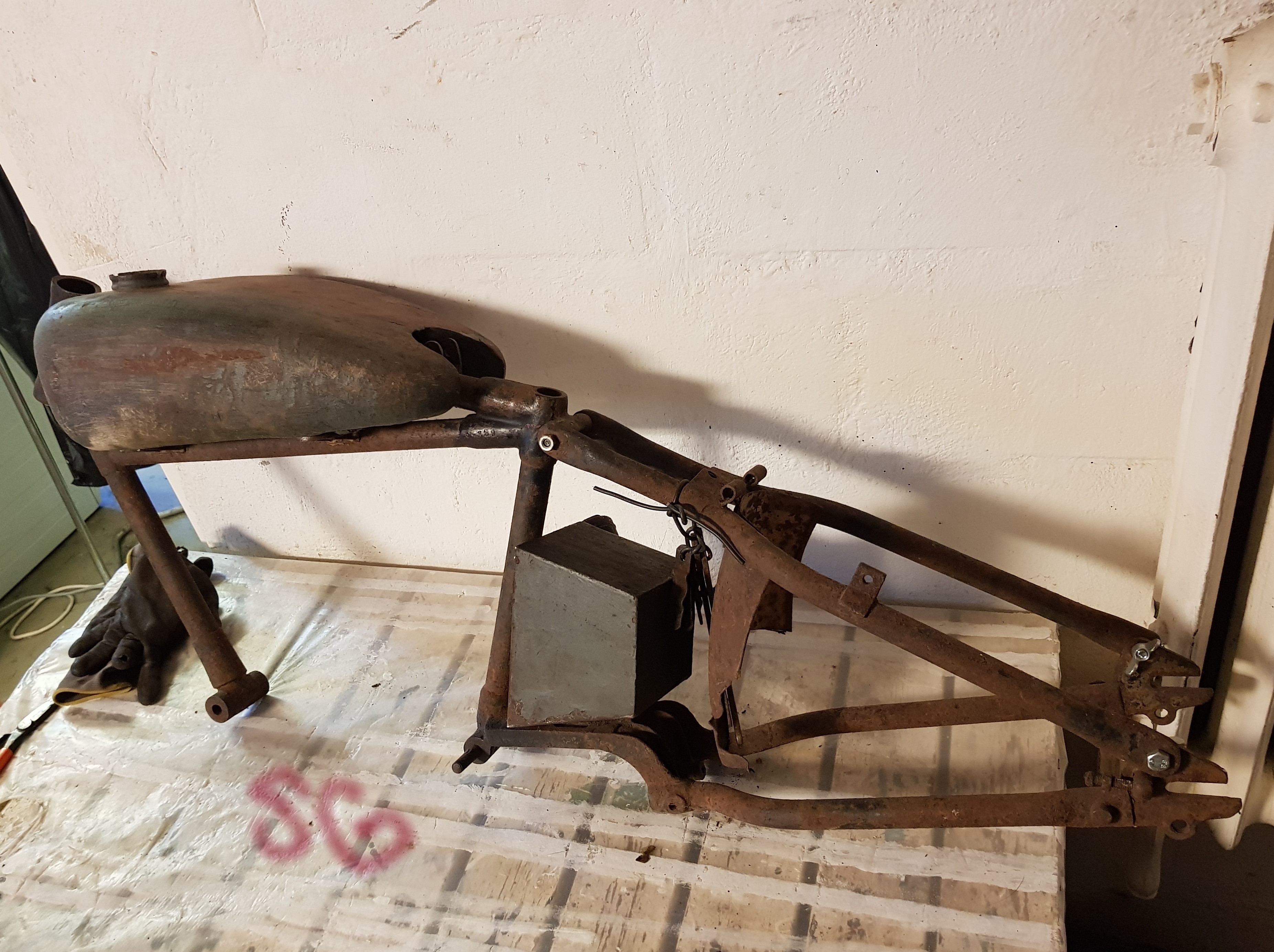 Tack :D Behöver allt utom ram, tank(eventuellt) och olje tank(behöver tlc), dvs ett öppet kort. Husqvarna i första läge. Dock original gaffel 1929 är ej superi men styrhuvud begränsar utbudet, får undersöka det. Sen hjul minst hederliga 21"(dvs pre 1980) dock Harley mfl är för grovt.
