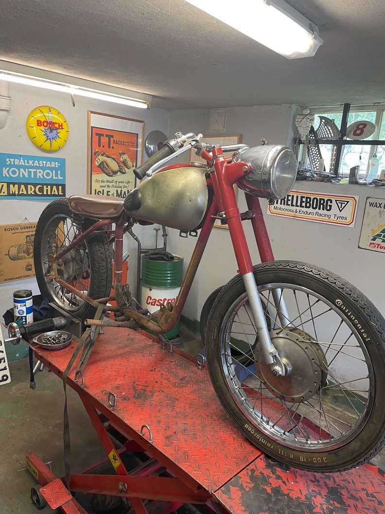 Och innan jag ger mig, gamla ramar före 1939 är helgjutna eller riktigt gods på, 1950 blev det rör tunna mycket 98cc, självklart är de sämre men väger bra mycket mindre. Man känner om det är dåligt, 1930tal är bättre än 1910-20 men amrikanskt samt svenskt är inga skit ramar.